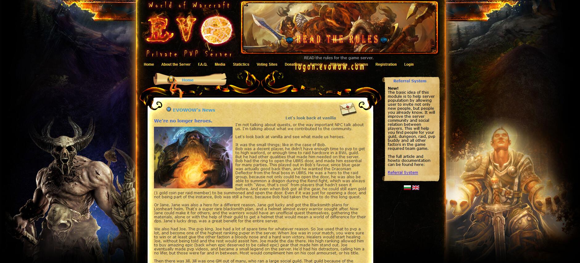 服务器基本介绍:The World Of Warcraft Private PVP Server. The server support v3.3.5a Custom XP Rates. Updates every week. ICC - scripted Good rewards from Custom EVENTS VOTE and Donate SHOP. Portal Master Referral System 大魔兽世界私人PVP服务器。服务器支持v3.3.5a自定义XP率。每周更新。ICC的剧本自定义事件的好回报投票和捐赠店。门的主人转诊制度