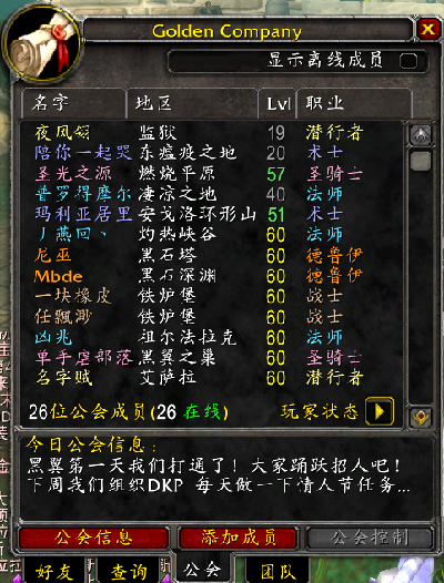 经典永久国服 / 一区 / 莫格莱尼 | 2020-02-16 | 查看公会DKP | WebDKP |