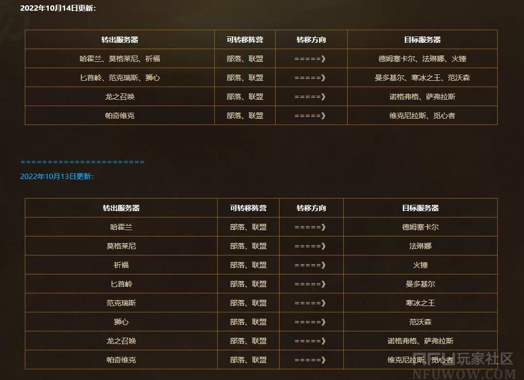 NFU玩家社区>所有快讯>免费角色转移服务器列表——“巫妖王之怒”(10.14更新)