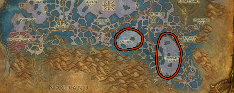 或者,你可以在以下任何区域钓鱼:贫瘠之地(The Barrens)、秘血岛(Bloodmyst Isle)、黑海岸(Darkshore)、幽魂之地(Ghostlands)、铁炉堡(Ironforge)、洛克莫丹(Loch Modan)、银松森林(Silverpine Forest)、西部荒野(Westfall)。