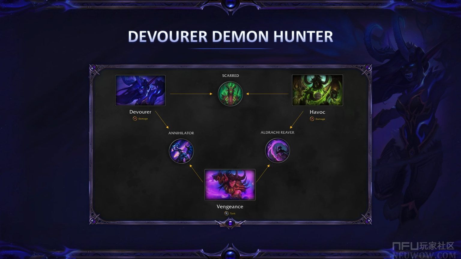 虚空精灵的恶魔猎手将在12.0预补丁期间通过一个非常短的任务线解锁。同时,吞噬者专精和新的英雄天赋树也将在此时开放。