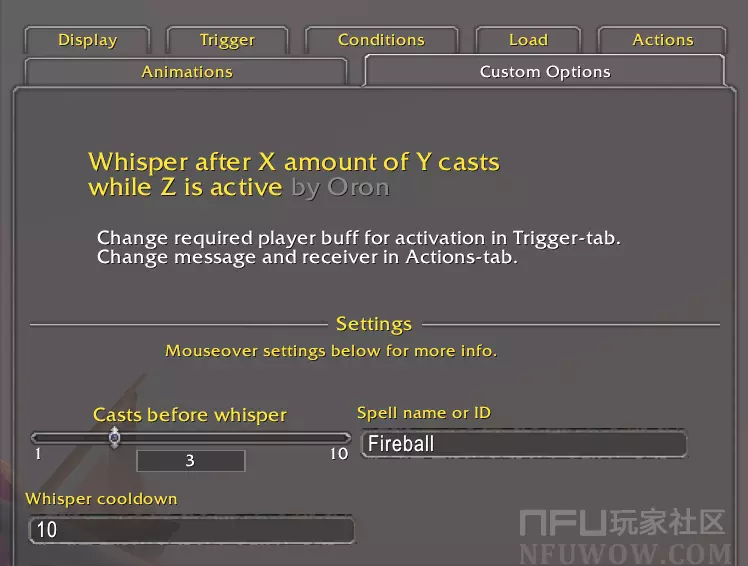 NFU玩家社区>所有WA字符串>当Z激活时,X次施放Y法术后密语