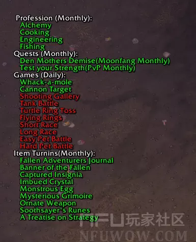 NFU玩家社区>所有WA字符串>Darkmoon Faire Checklist