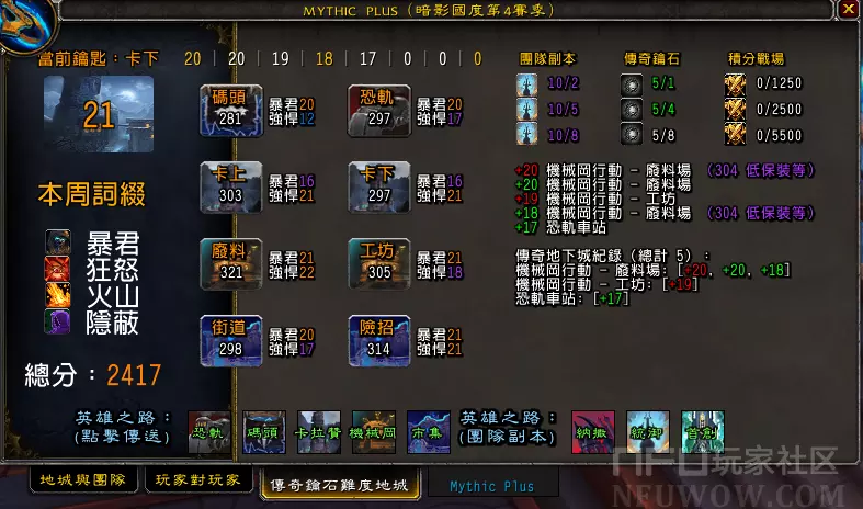 NFU玩家社区>所有WA字符串>9.2Mythic+分數和寶庫統計(Snow繁中版)